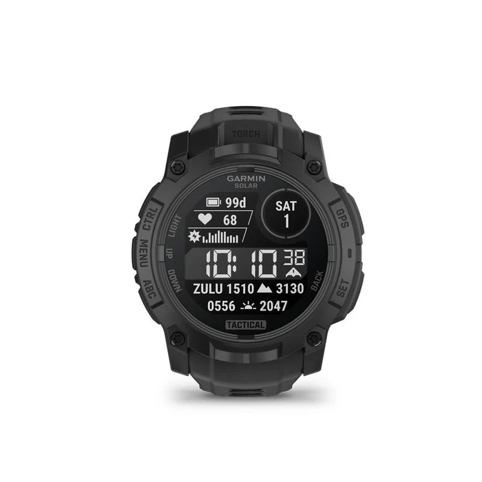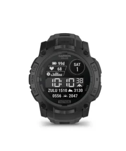 The Instinct 3 Tactical Edition watch is built for demanding outdoor and tactical operations, offering specialized features like Night Vision Capability with an NVG mode that dims the display and blackouts the screen for stealthy use under night vision goggles. For training or missions involving weighted packs, a dedicated Rucking Activity profile allows users to input pack weight for accurate tracking. Stealth Mode enhances security by stopping GPS tracking, disabling wireless communication, and wiping user memory with a Kill Switch if necessary. Navigation is streamlined with Projected Waypoints, allowing users to set and save remote locations. For long-range shooting, the watch includes a preloaded Applied Ballistics Solver (requires a fee) accessible directly or via the AB Quantum App, which also allows for managing profiles and using a smartphone as a secondary display. Airborne operations are supported by Jumpmaster Mode, which helps calculate release points and guides navigation after a jump. Finally, the core Tactical Activity feature provides essential data like time, pace, elevation, and location in multiple coordinate formats, making it a comprehensive tool for tactical environments.